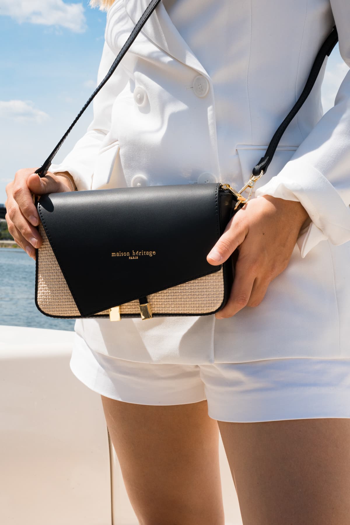 Découvrez le Sac Bandoulière Rigide en Cuir et Paille : une pièce sophistiquée au design structuré. Sa double fermeture assure sécurité et praticité, tandis que ses détails métalliques ajoutent une touche d’élégance. Structure rigide en cuir et paille naturelle Fermeture double : zippée + rabat pour plus de sécurité Détails métalliques élégants (boucles / finitions) Bandoulière réglable pour un porté confortable Dimensions : 24 x 26 x 8 cm