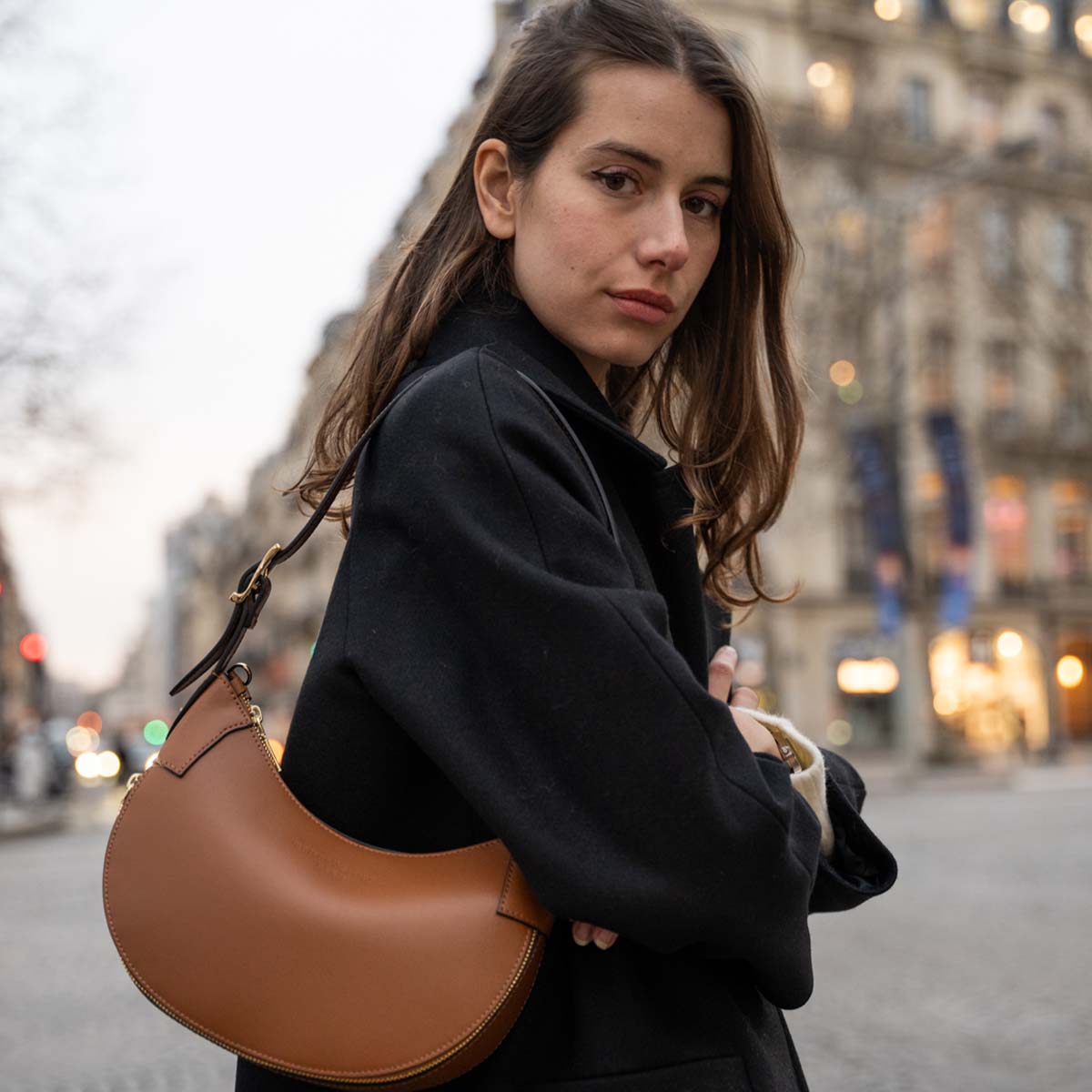 Sac à épaule avec poche intérieure zippée, fermeture principale à glissière, bandoulière amovible et fermeture inférieure pour agrandir le sac.