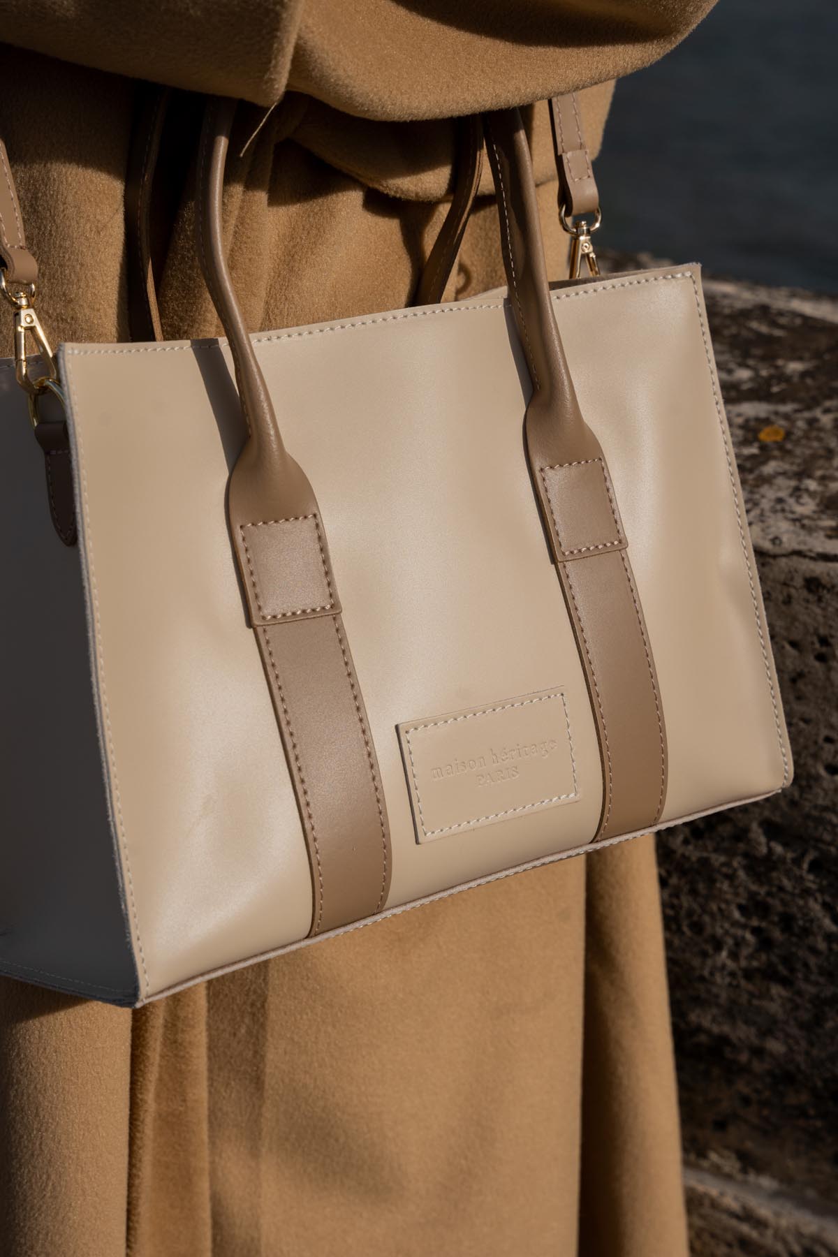Sac à main, avec deux anses, avec une bandoulière amovible, un compartiment avec une poche intérieur au dos du sac à zip.