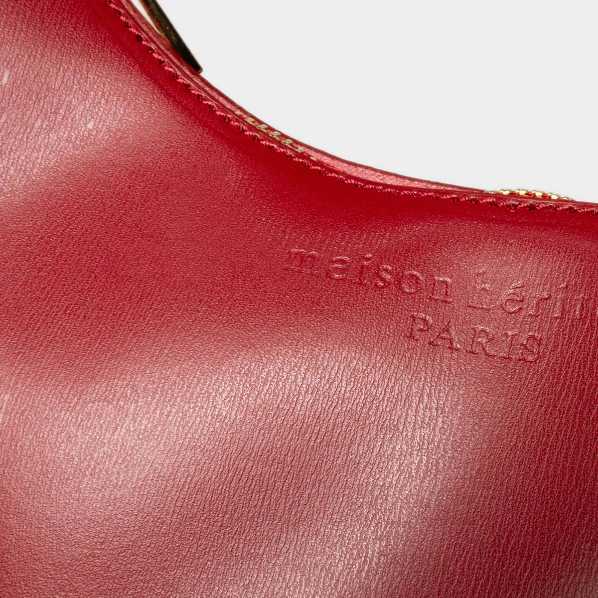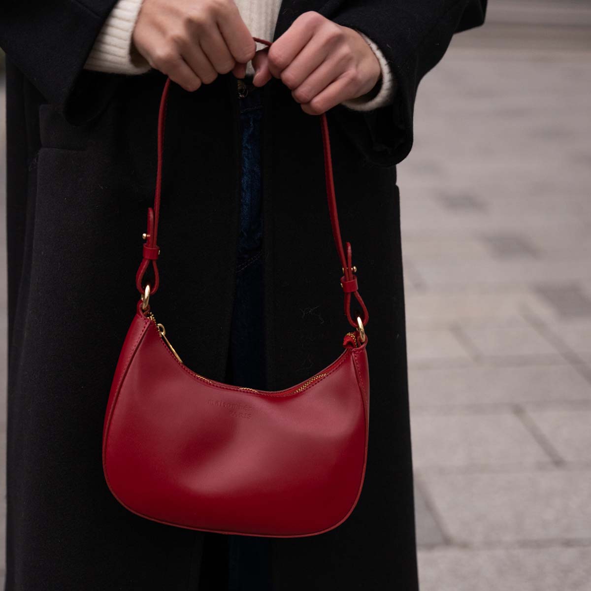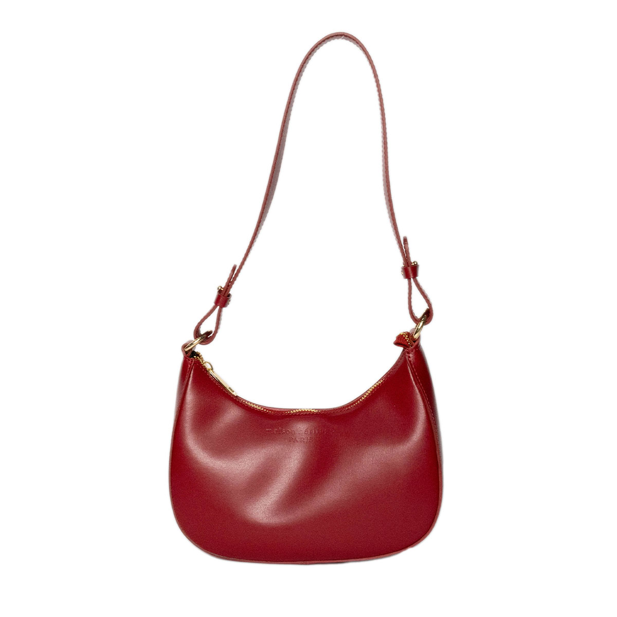 Sac à épaule en cuir avec poche intérieure zippée, poche frontale, fermeture principale à glissière et bandoulière amovible.