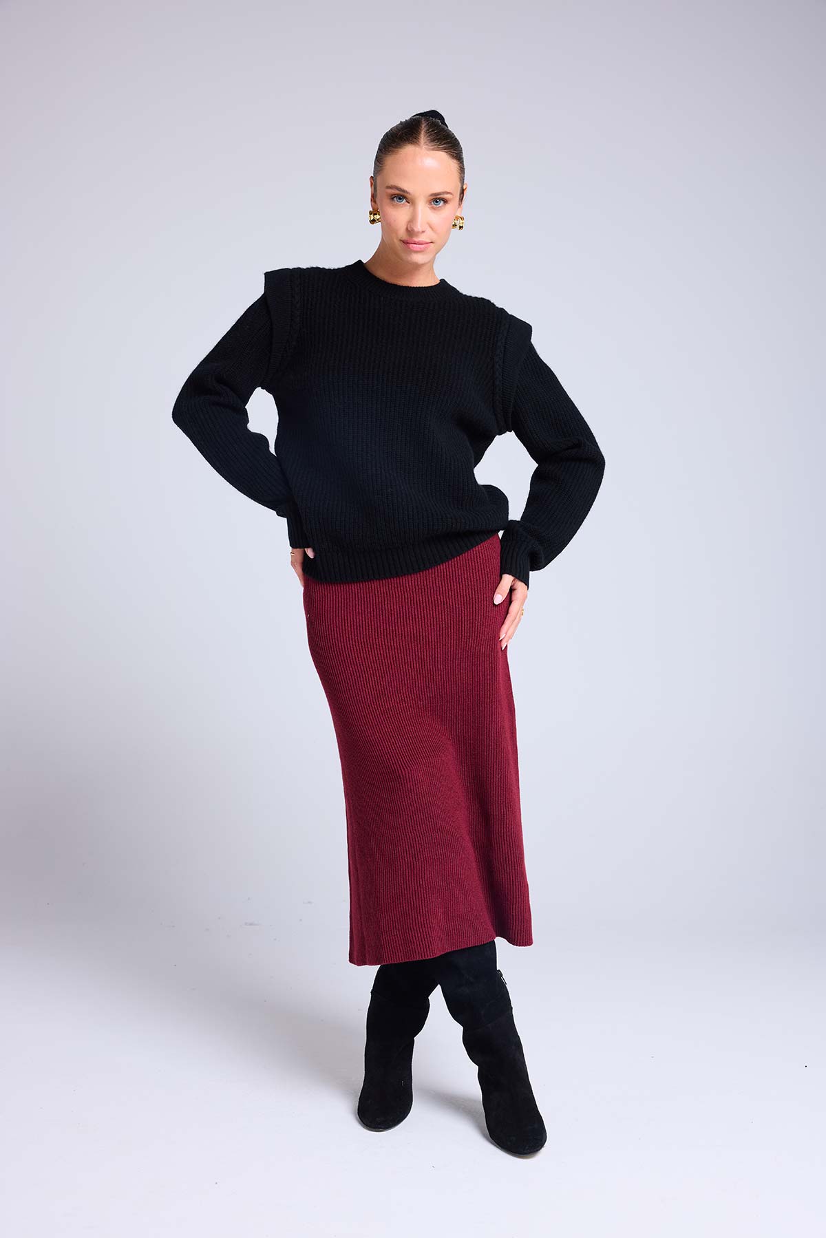 Le pull CARLA joue sur la structure et le raffinement pour apporter du caractère à la silhouette.