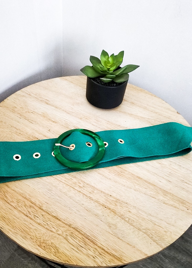 Ceinture Vert Cuir suédine italienne Effet daim Boucle translucide Fabriquée en Italie