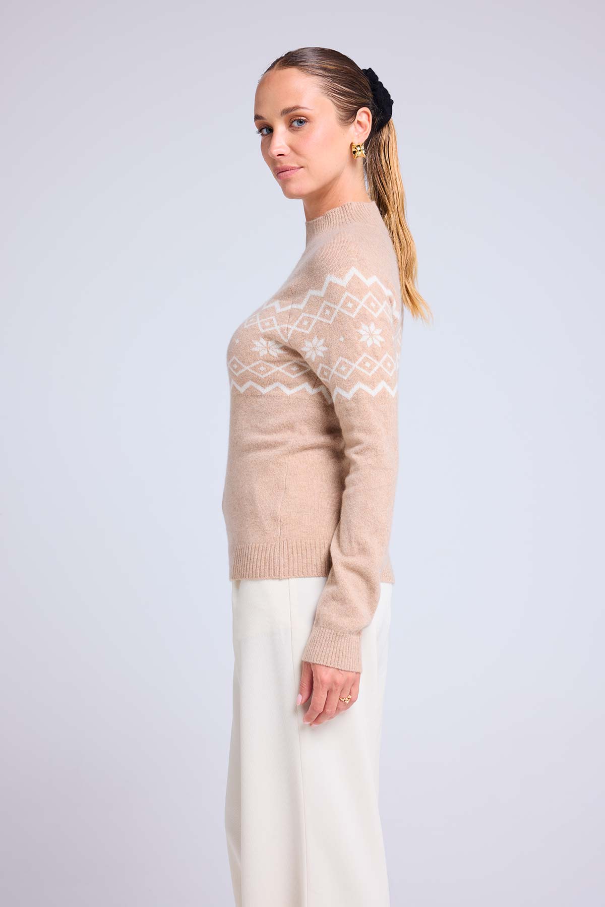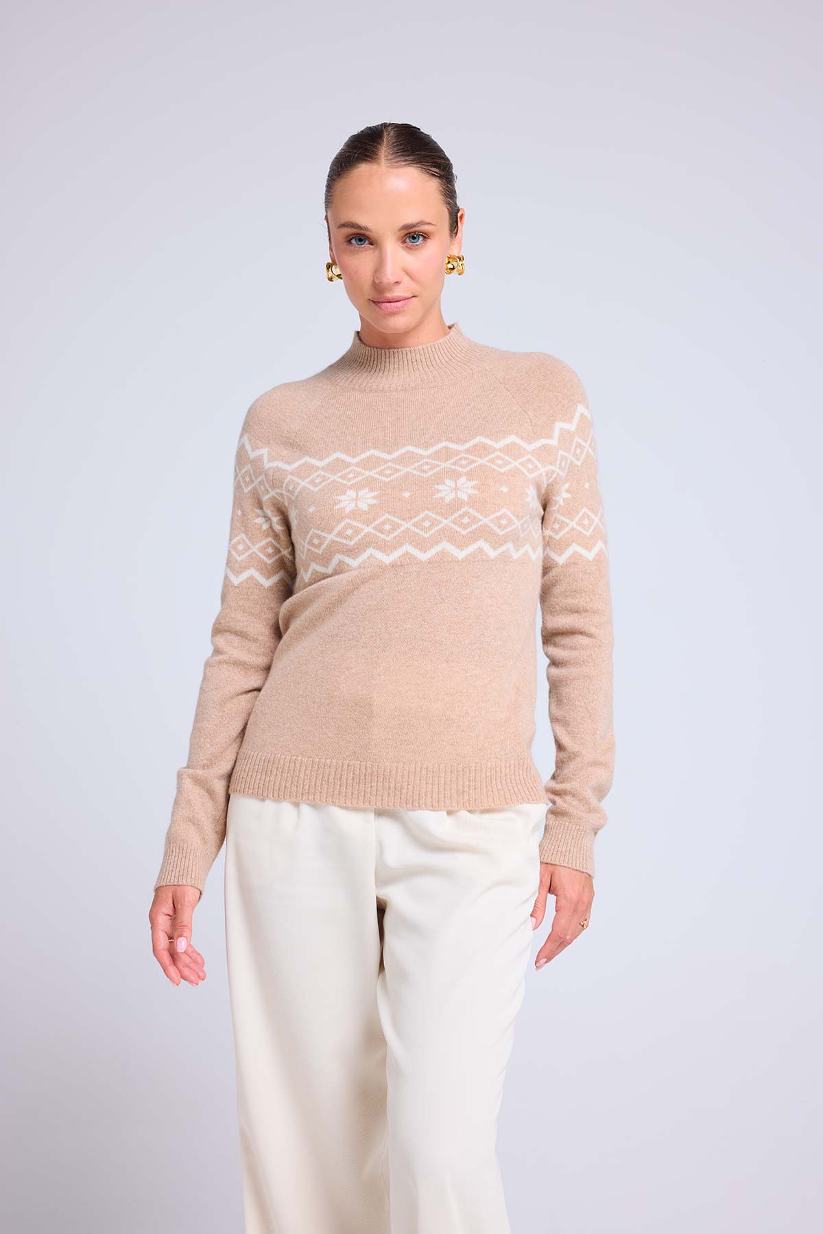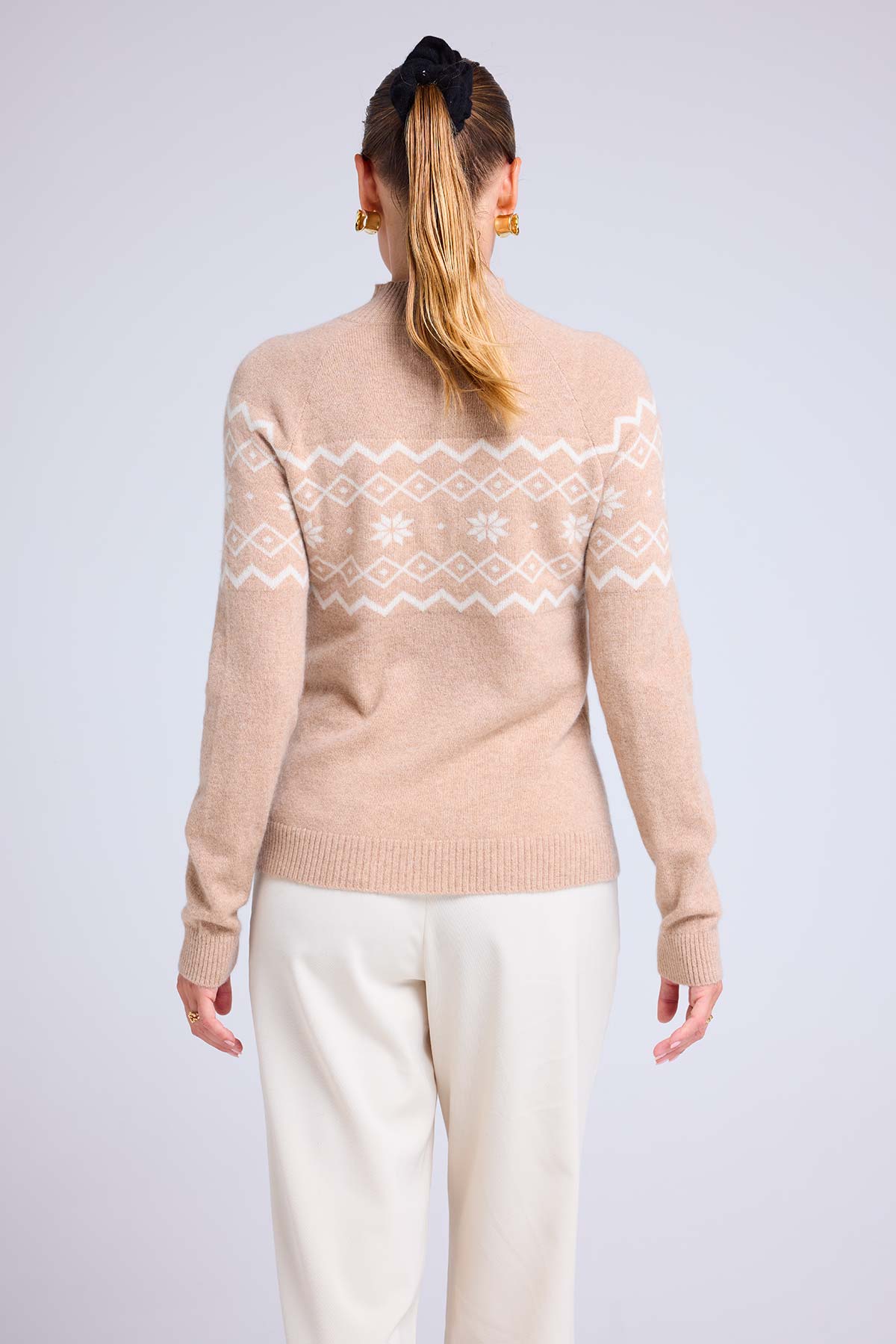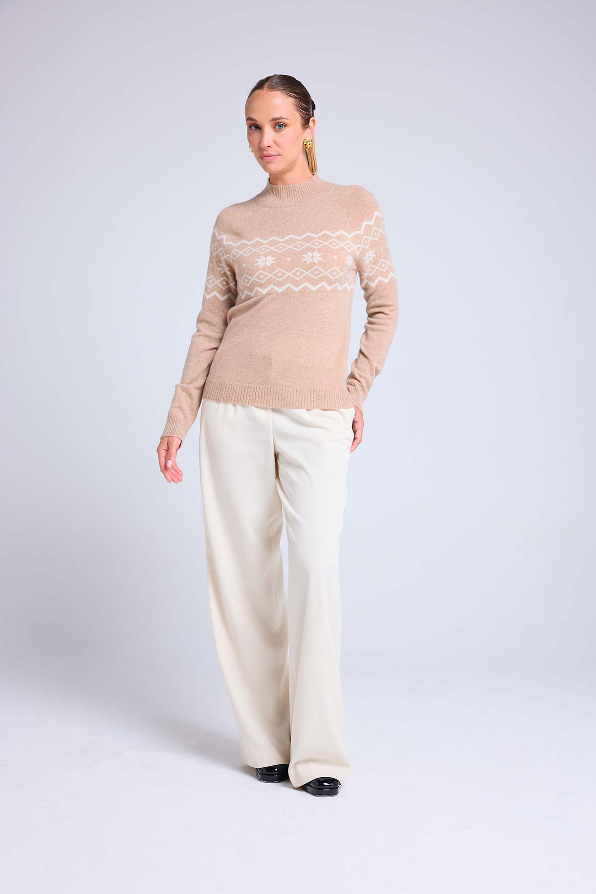 Telle une pluie de flocons, des motifs s’invitent sur ce pull col cheminée pour twister votre silhouette hivernale. Confectionné en cachemire 4 fils, il dévoile un col montant, des manches longues et des bords côtelés. Mêlant audace et douceur, complétez votre look casual avec un pantalon droit ou un jean.