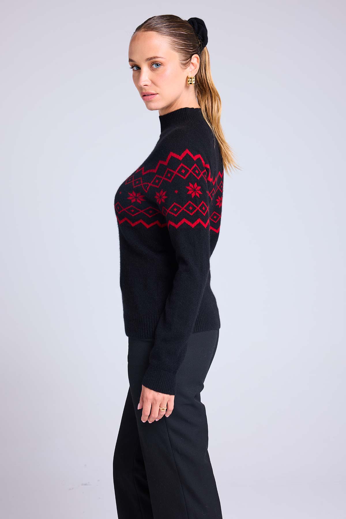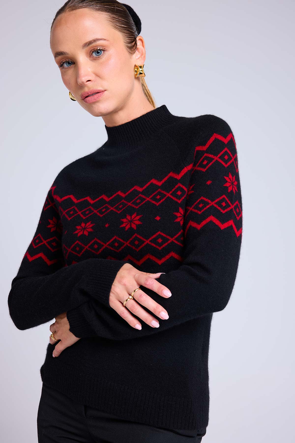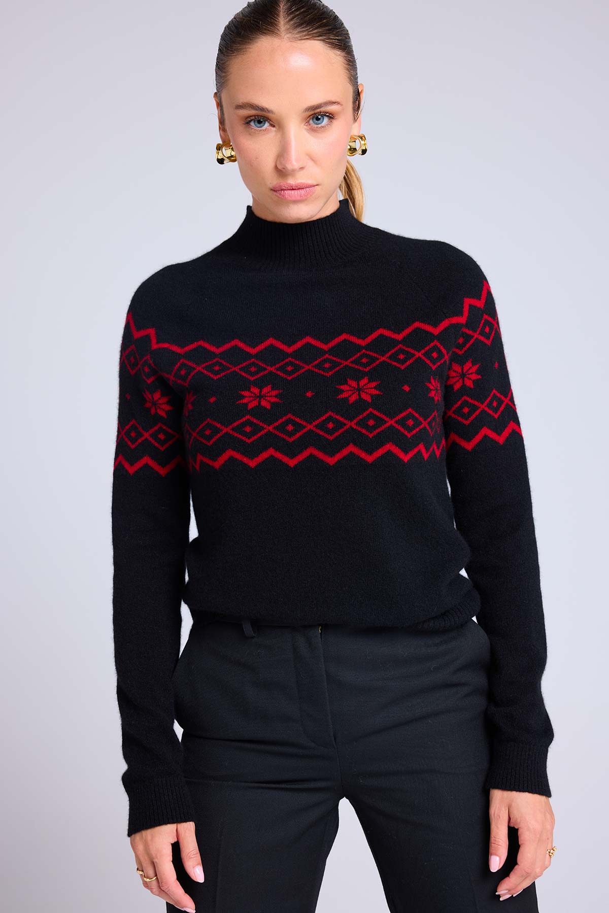 Telle une pluie de flocons, des motifs s’invitent sur ce pull col cheminée pour twister votre silhouette hivernale. Confectionné en cachemire 4 fils, il dévoile un col montant, des manches longues et des bords côtelés. Mêlant audace et douceur, complétez votre look casual avec un pantalon droit ou un jean.