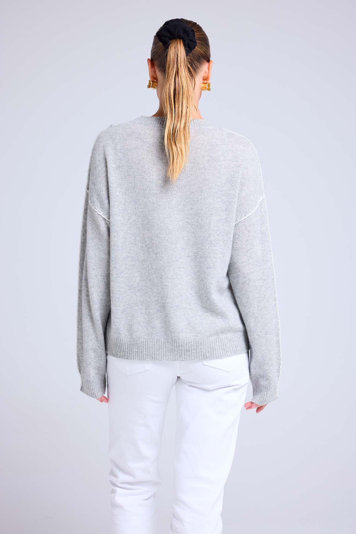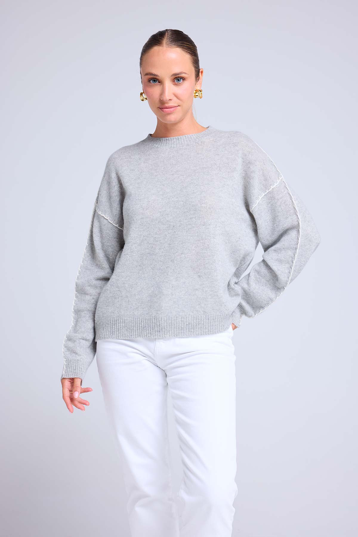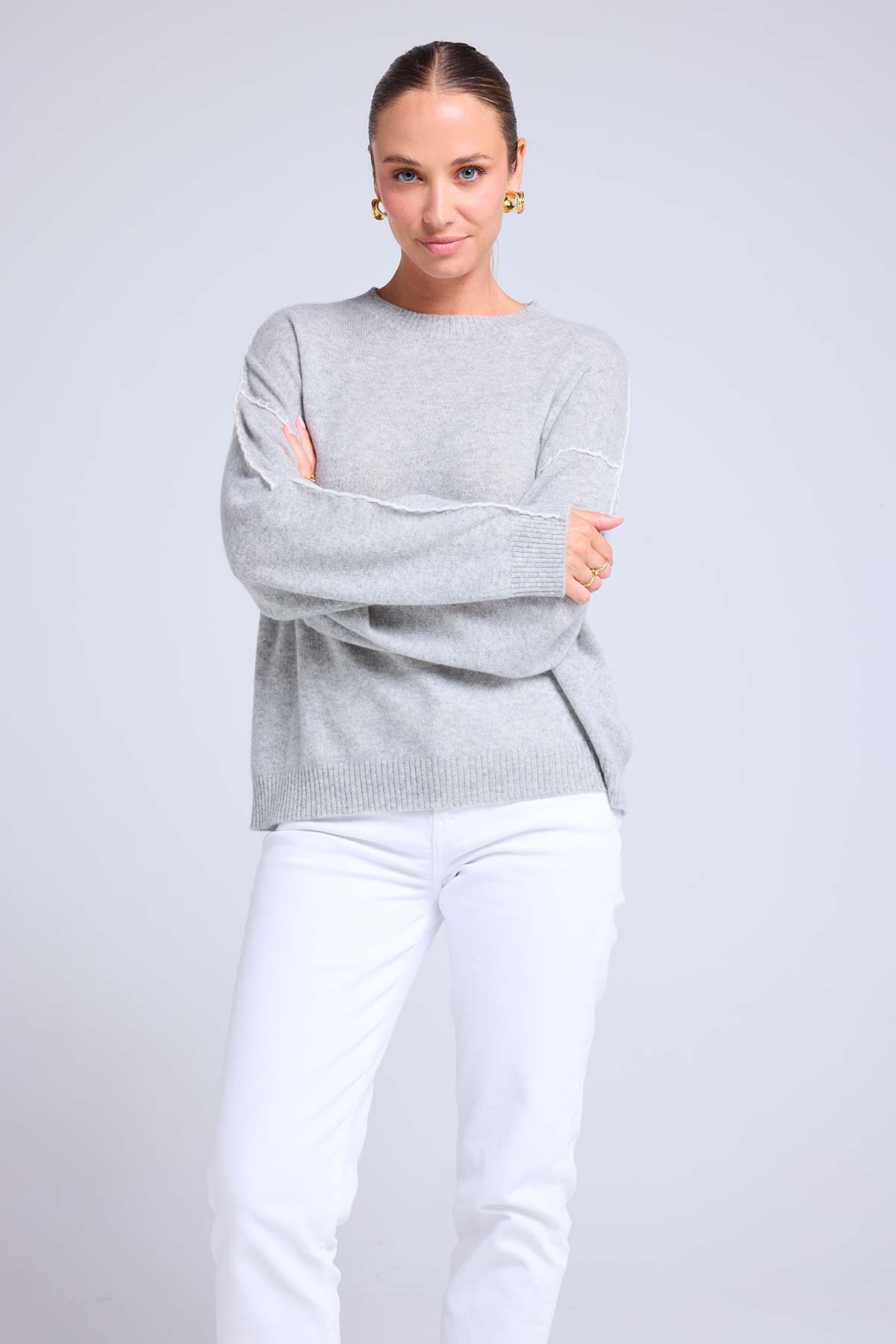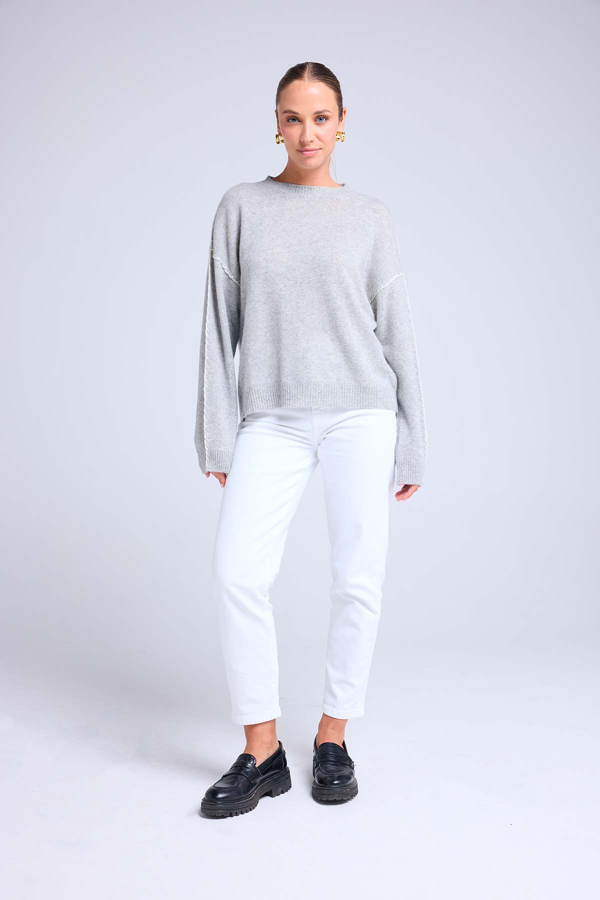 Réhaussez vos tenues avec élégance et raffinement avec ce pull confectionné en 100% cachemire. Muni d’un col rond, de manches longues et de surpiqures en contraste bimatières, il offre une coupe oversize pour une allure décontractée avec chic. À marier à toutes vos tenues, il donnera autant d’éclat à un jean, qu’à une jupe ou un pantalon fluide.