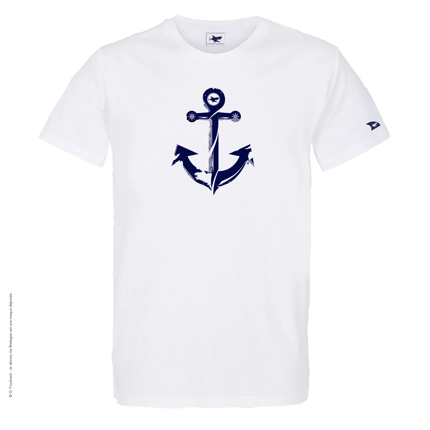 Dessin ANCRE Bleu Marine – T-shirt Blanc Col Rond