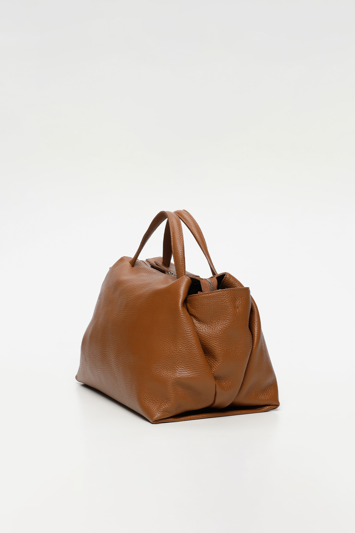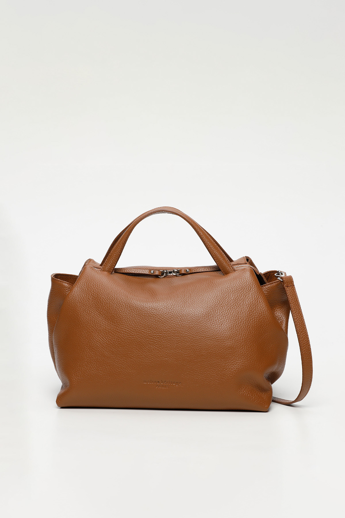 Sac à main en cuir avec poche intérieure zippée et deux poches extérieures. Fermeture à glissière, poignée et bandoulière ajustable et amovible.