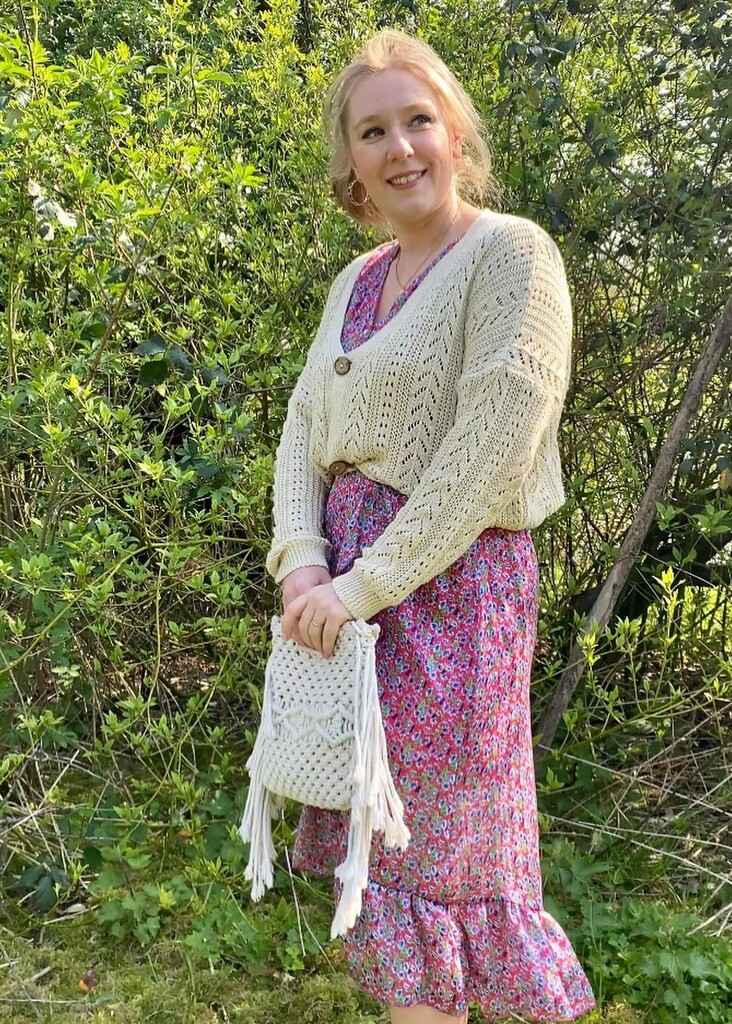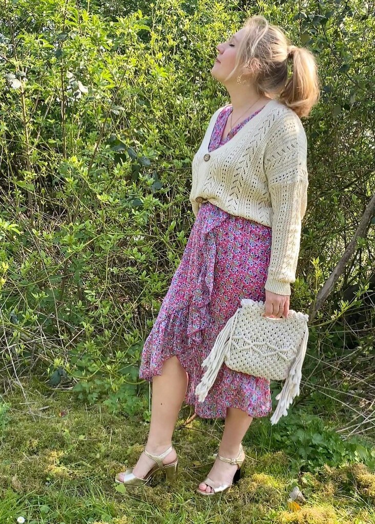 L’enjoy look : Le porter avec la Robe midi imprimé fleuri viorne pour un look printanier.