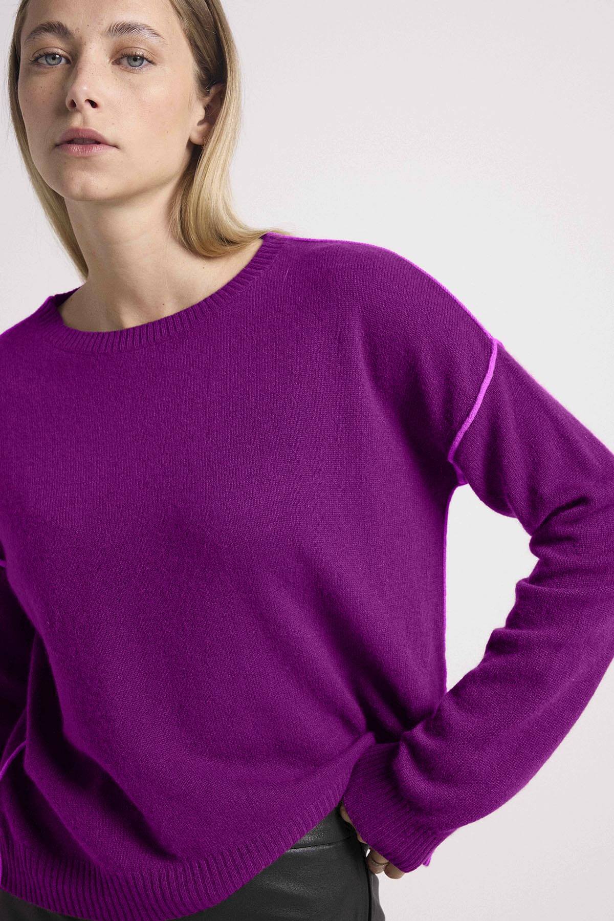 La saison s’annonce douce avec ce pull confectionné en 100% cachemire. Muni d’un col rond, de manches longues et de liserés contrastés dans l’esprit néons, il offre une coupe oversize pour une allure décontractée avec raffinement. À marier à toutes vos tenues, il donnera autant d’éclat à un jean, qu’à une jupe ou un pantalon fluide.