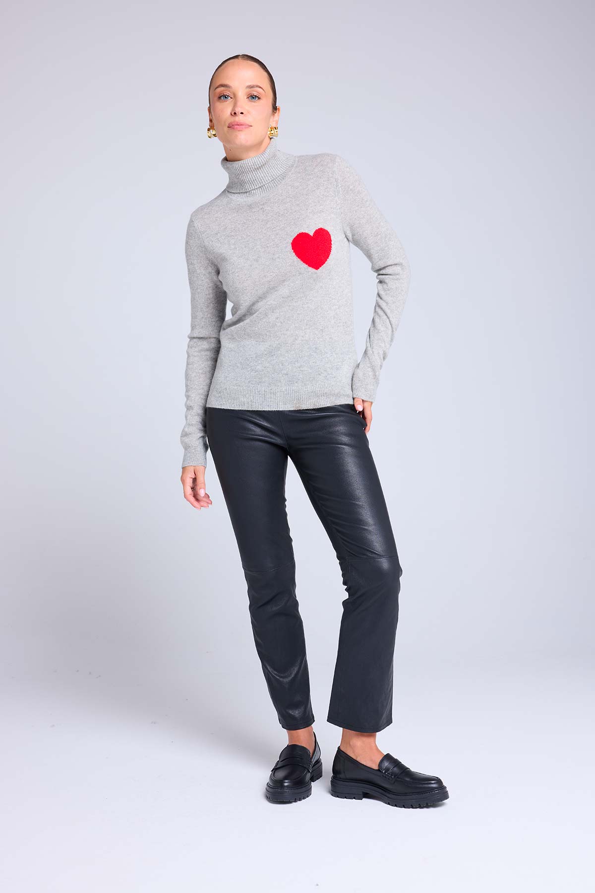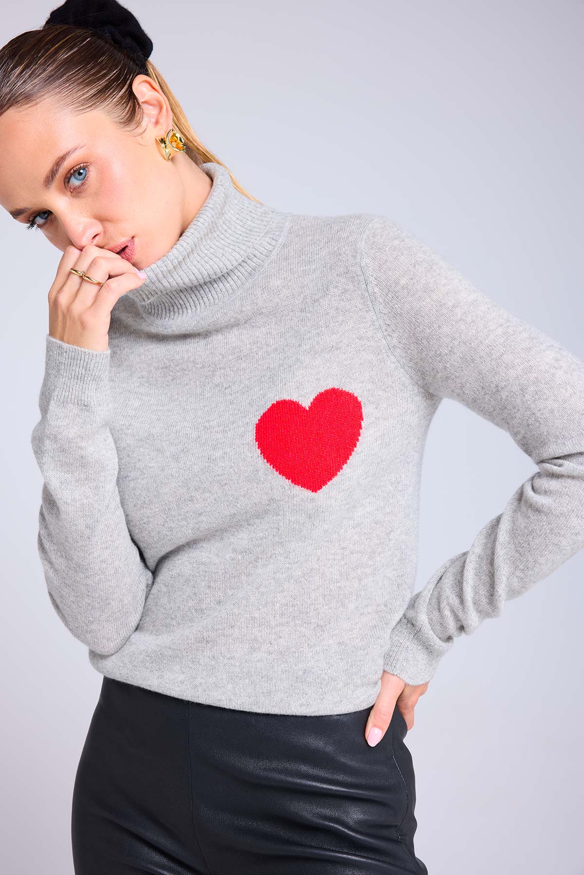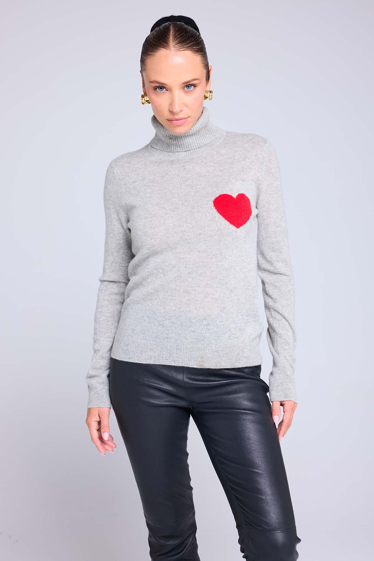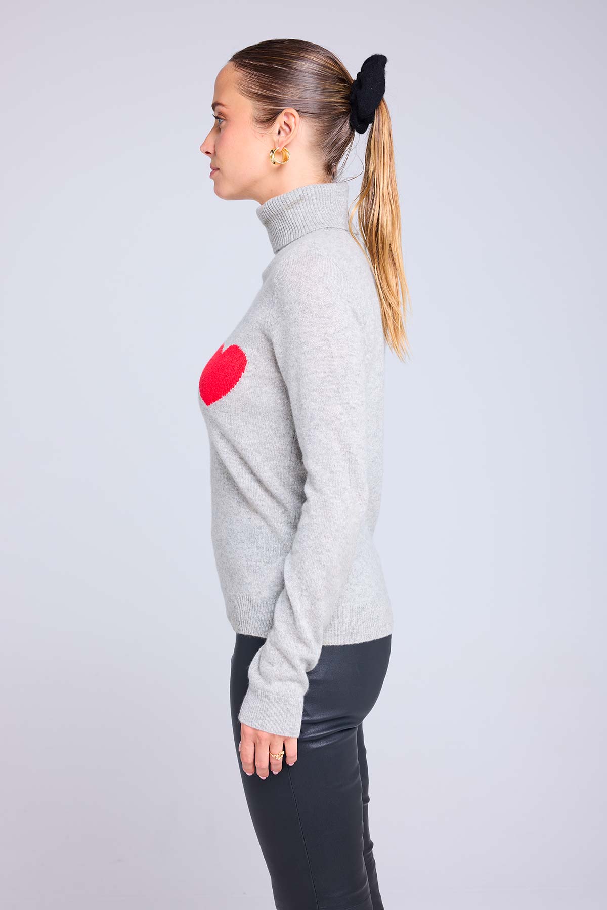 HIGH HEART – Pull col roulé en 100% cachemire avec cœur à la poitrine