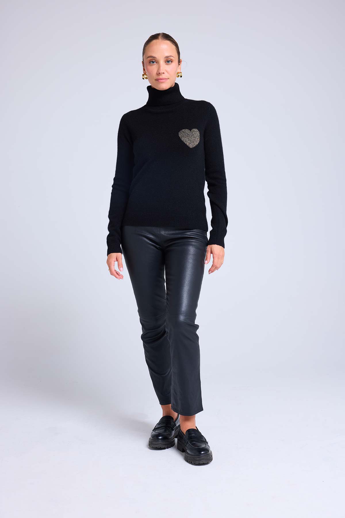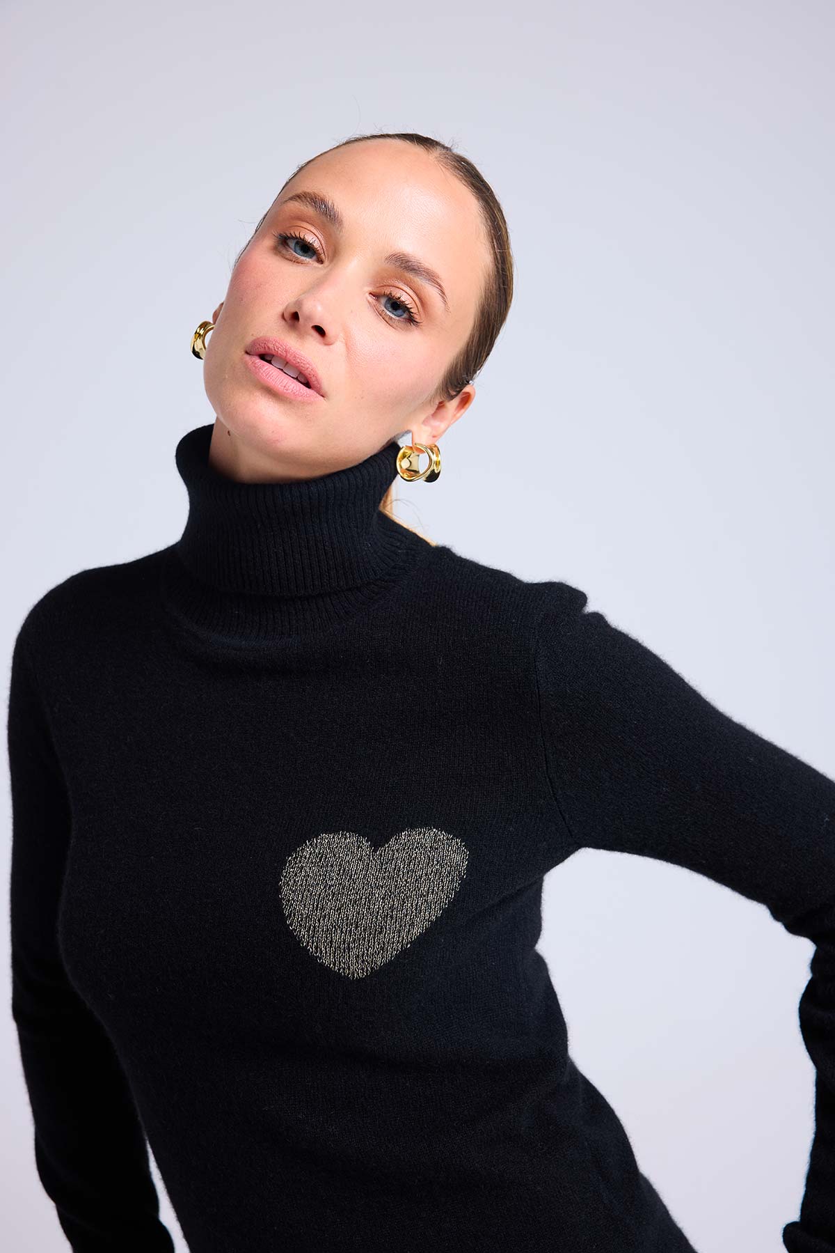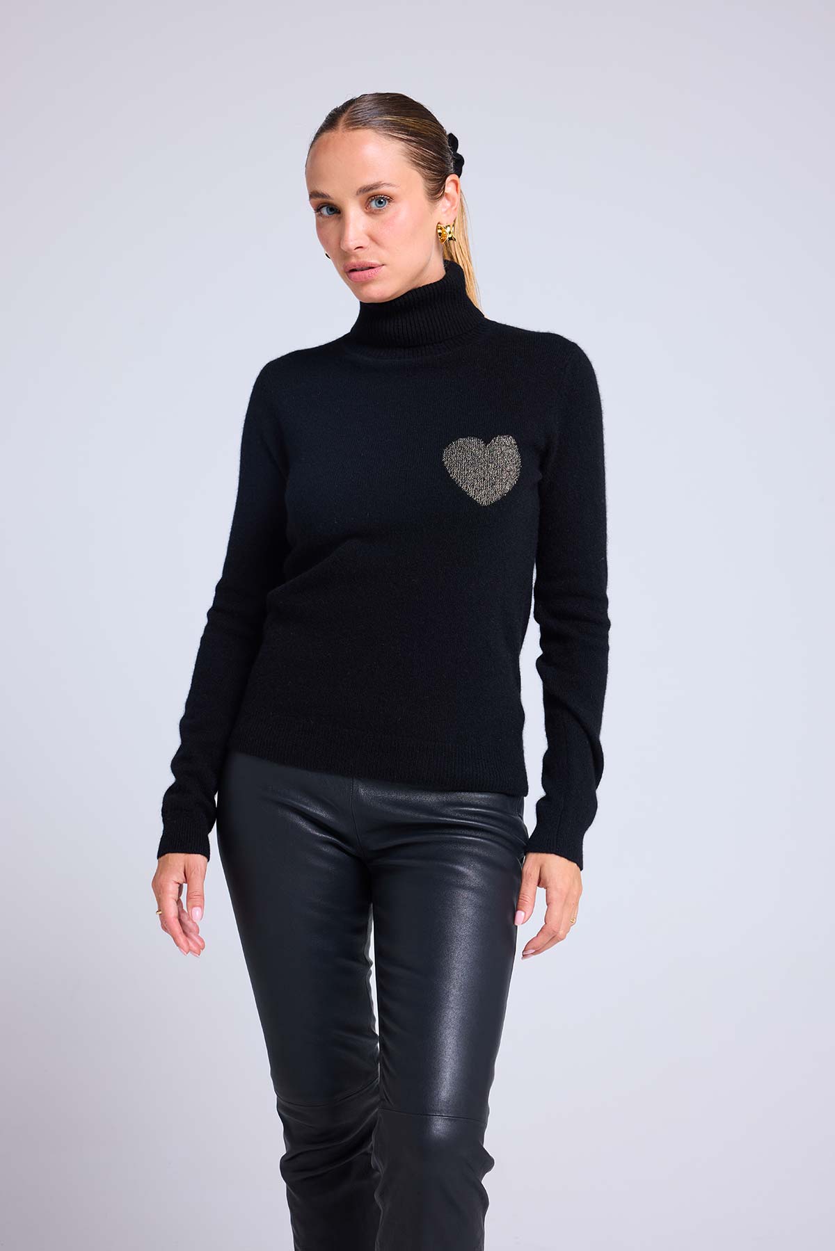 HIGH HEART – Pull col roulé en 100% cachemire avec cœur à la poitrine