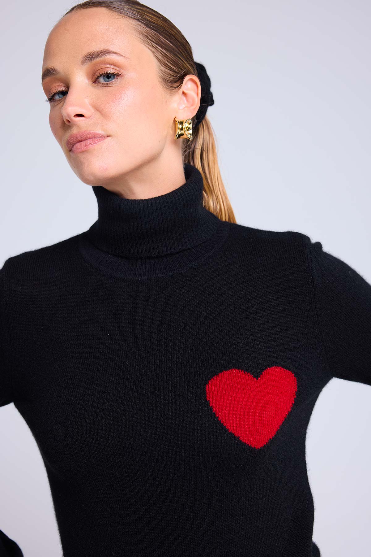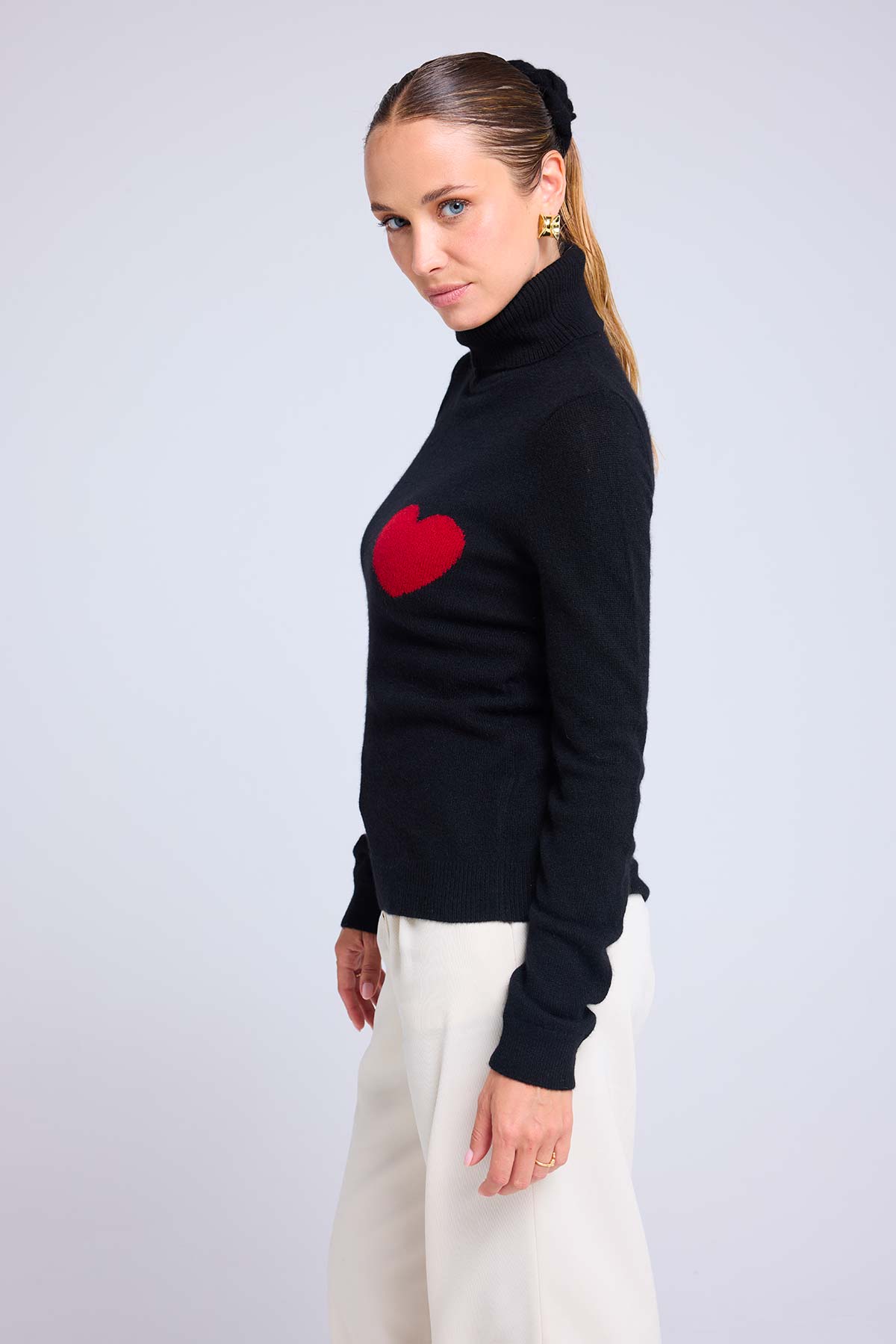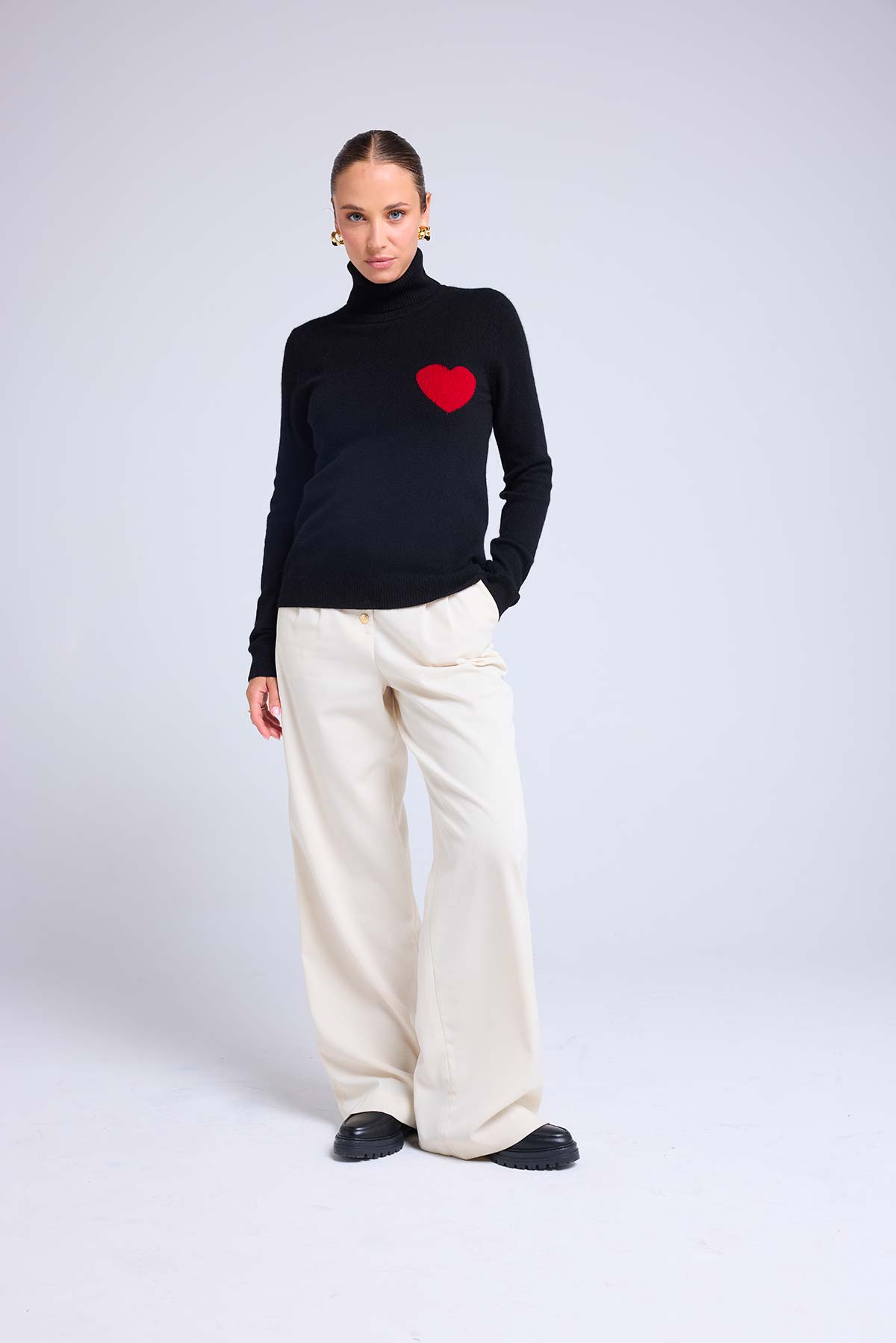 HIGH HEART – Pull col roulé en 100% cachemire avec cœur à la poitrine