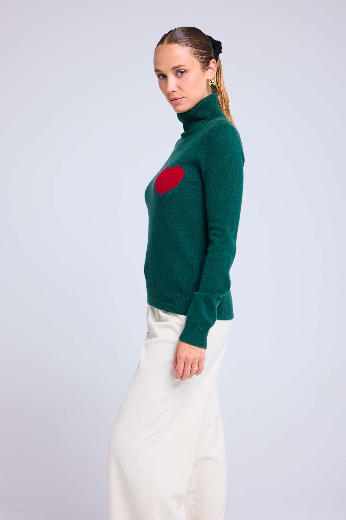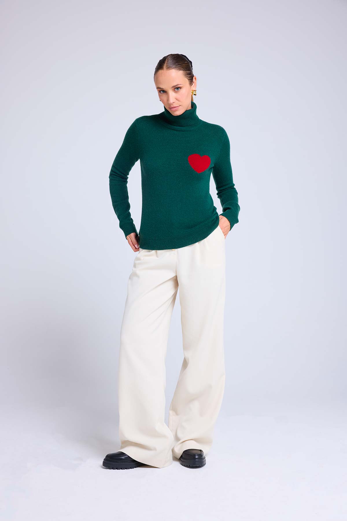 HIGH HEART – Pull col roulé en 100% cachemire avec cœur à la poitrine