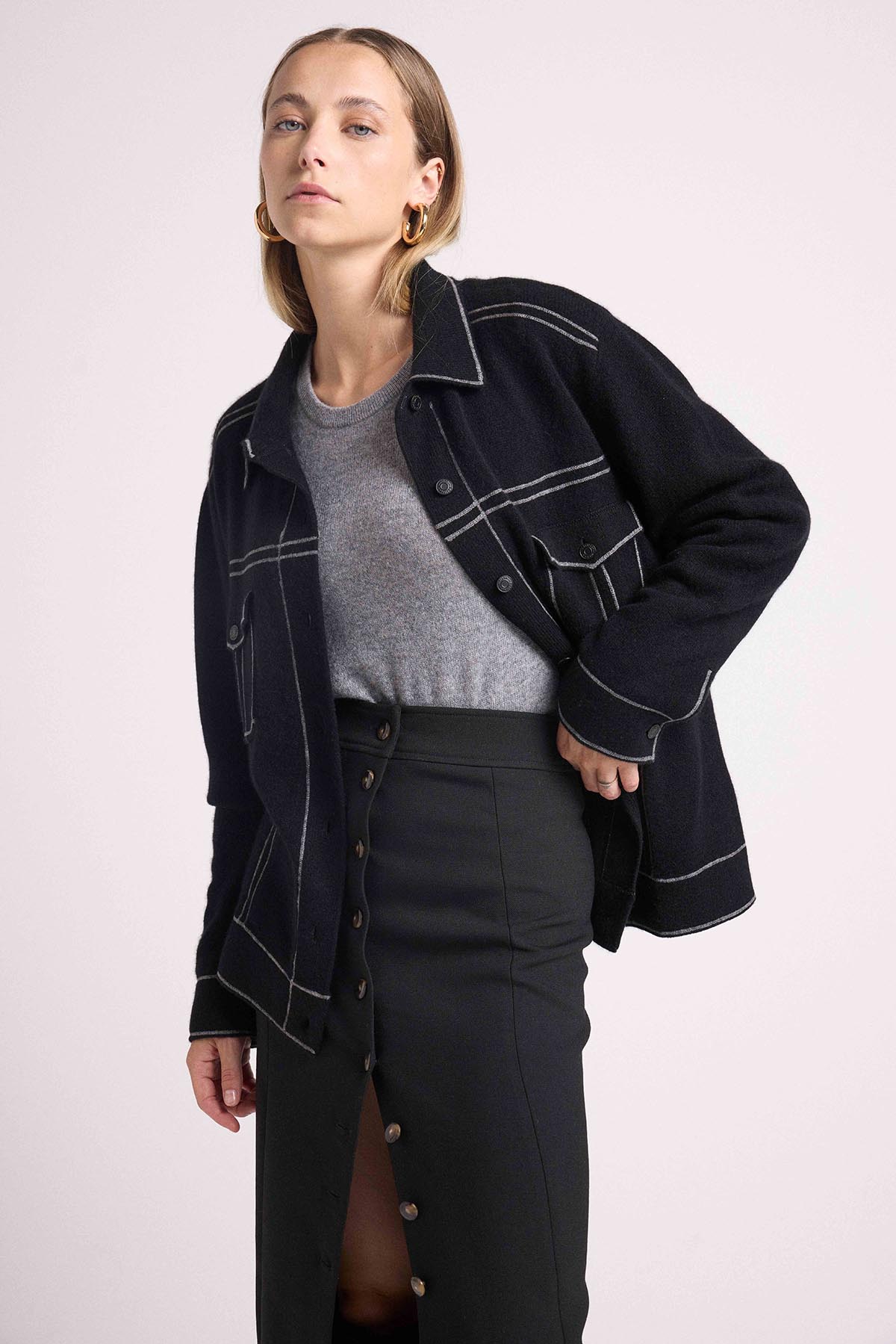 Bestseller et une des plus belles pièces iconiques du vestiaire maison héritage, cette veste trompe-l’œil denim en cachemire est la parfaite réinterprétation de la veste denim classique.