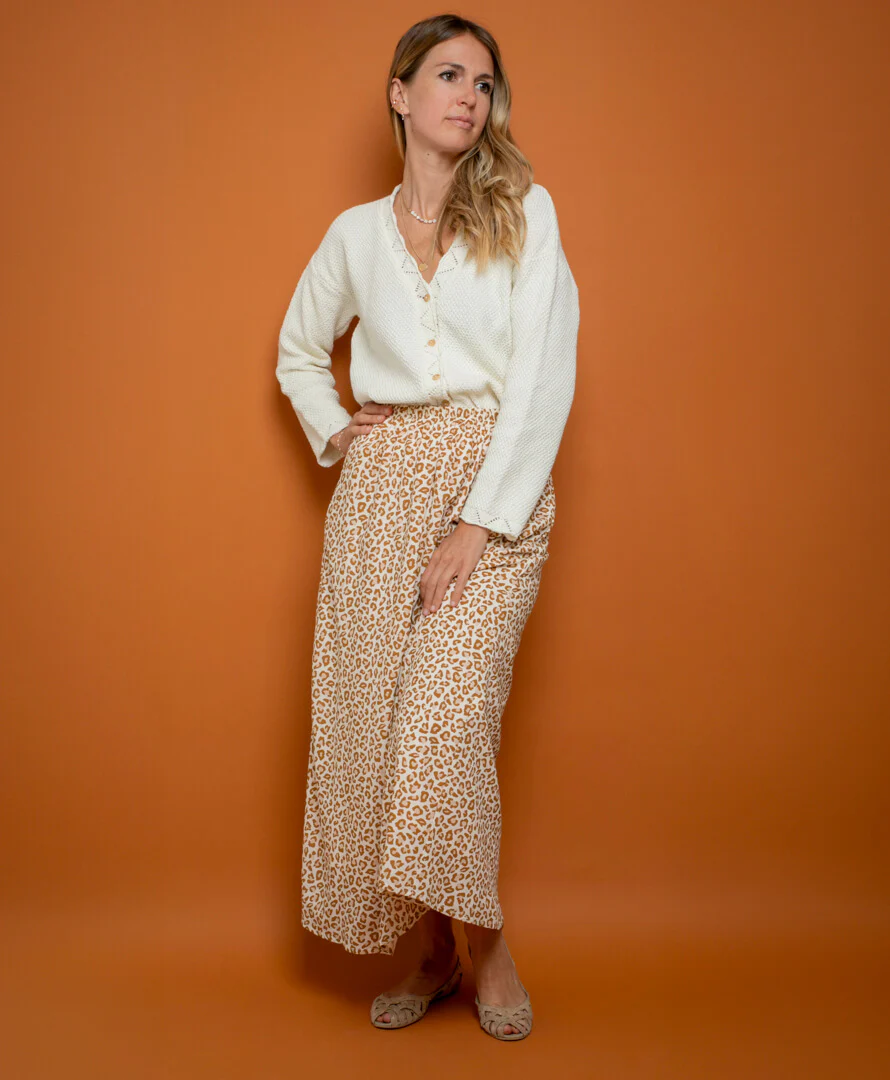 La Jupe Lola avec son imprimé Léopard vous plonge dans l’univers de l’élégance féline avec une touche sauvage et tendance : Coupe longue et évasée qui allie confort et style Taille élastique pour un ajustement parfait et un confort maximal Matière Viscose certifiée EcoVero™ garantissant une production respectueuse de l’environnement