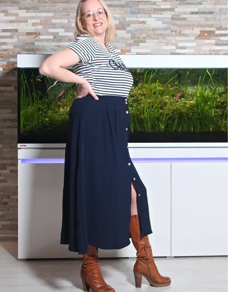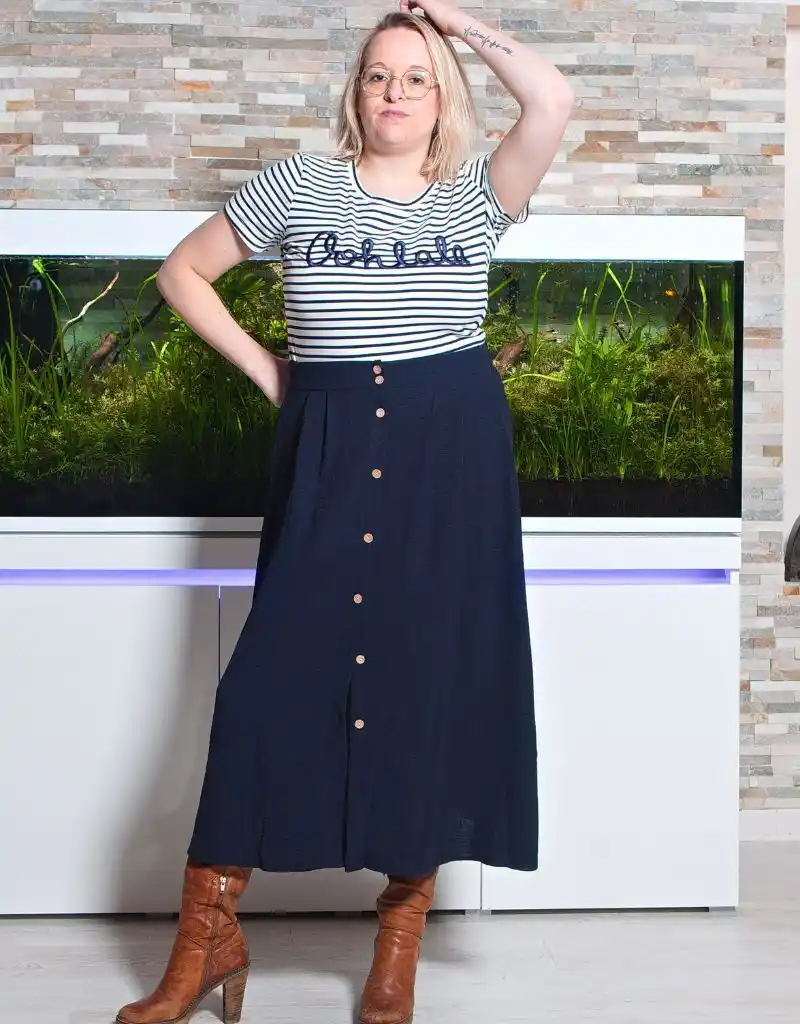 Jupe longue boutonnée marine : la pièce phare de votre garde-robe, du 36 au 50