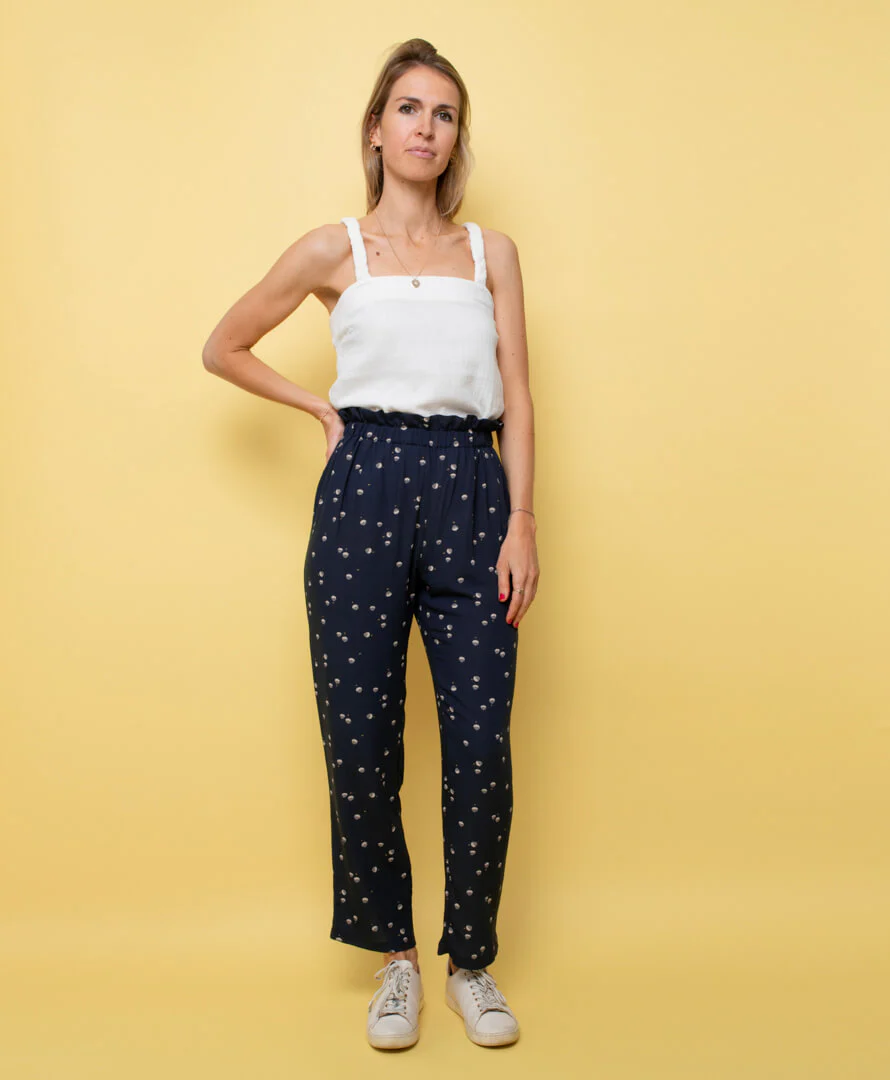 Le pantalon Cléa offre un confort optimal et un style original avec son imprimé Nightblue: Coupe ample et fluide agréable à porter à chaque mouvement Taille froncée pour un ajustement parfait. Tissu de qualité offrant un beau tombé. 100 % Viscose certifiée EcoVero™ Lenzing™ et certifiée Oeko-Tex Standard 100 garantissant une production respectueuse de l’environnement