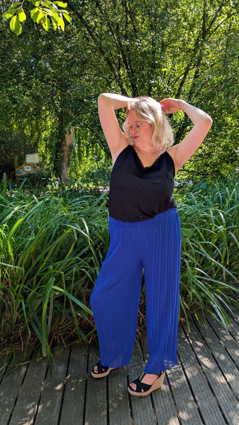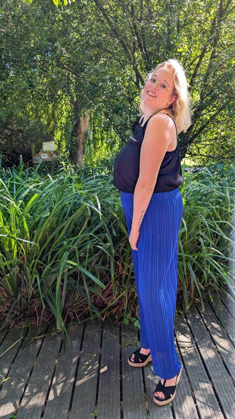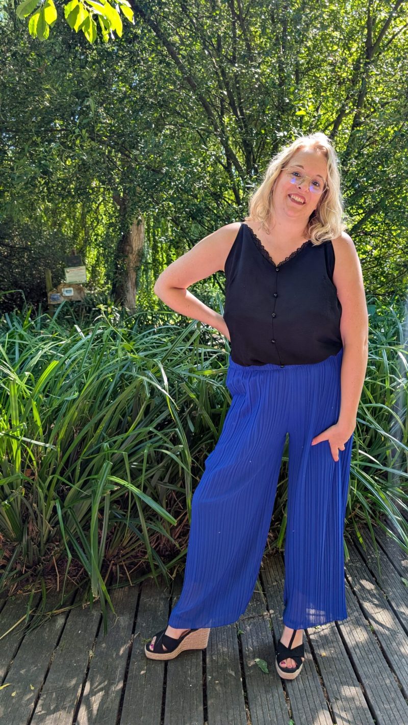 Craquez pour le pantalon magique plissée avec sa sublime couleur bleu roi! A porter tout au long de l’année.