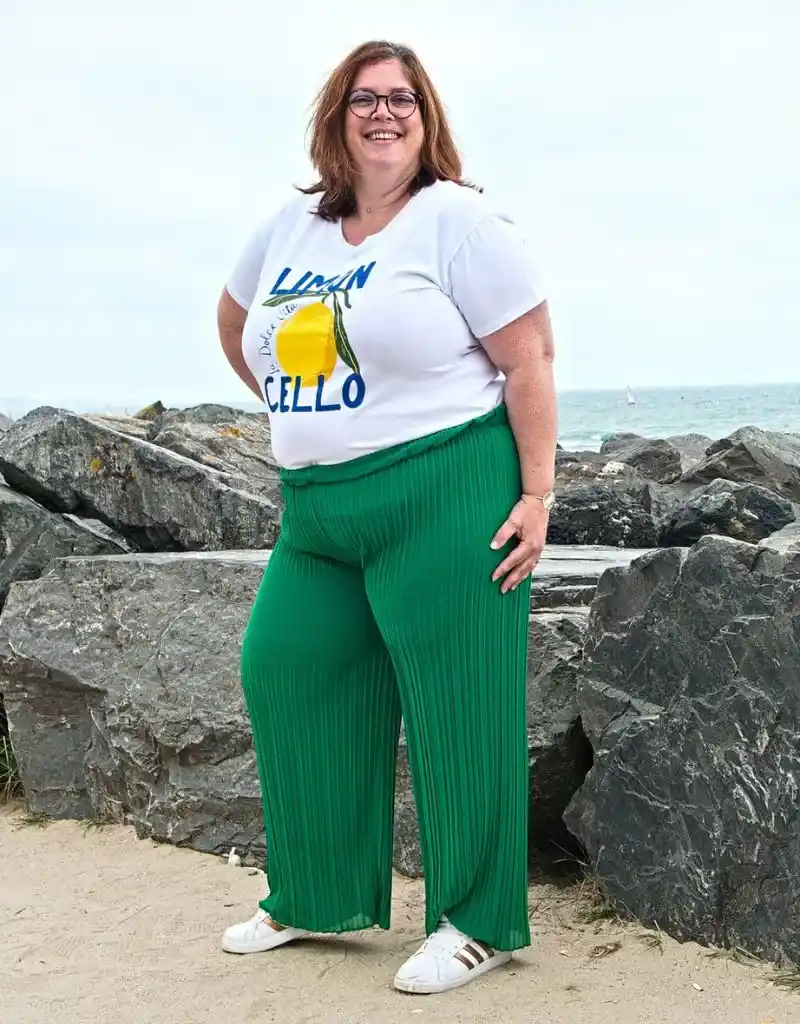 📸 Virginie porte une taille 48 et le pantalon tombe parfaitement, tout en légèreté.