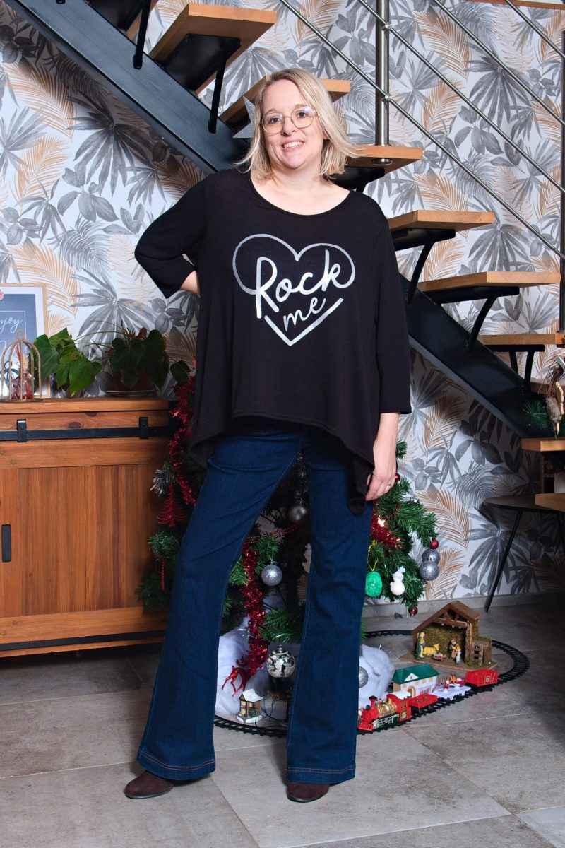 Ce pull manche 3/4 est parfait pour toutes les rockeuses dans l’âme ! Avec son inscription « rock-me », il affiche fièrement notre amour pour la musique. Sa belle finition et sa coupe loose en font un vêtement à la fois stylé et décontracté. Les tombées arrondies ajoutent une petite touche féminine et le rendent très flatteur sur n’importe quelle silhouette. De plus, sa légèreté et son confort en font un choix idéal pour toutes les saisons. Vous ne pourrez plus vous passer de ce pull rock’n’roll !