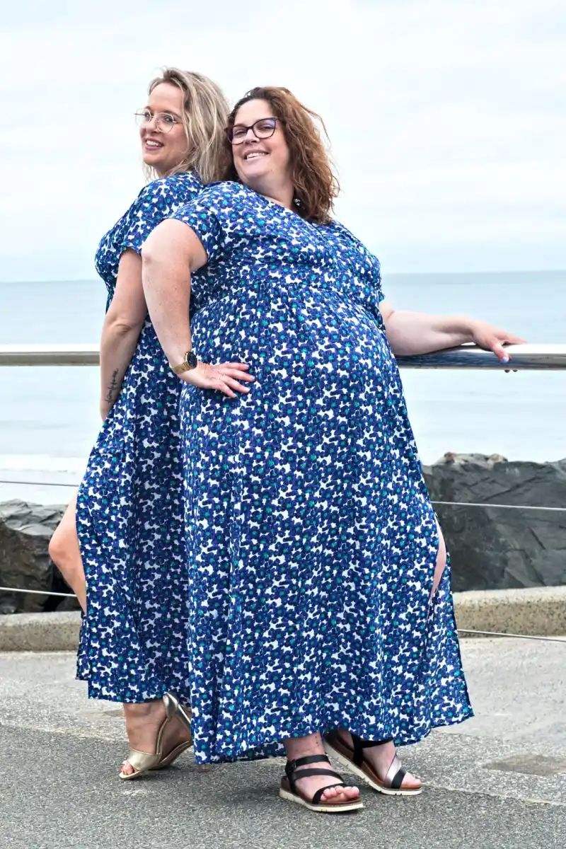 Virginie porte une taille 48/50 et elle mesure 1 m65 et est enceinte de 7 mois et porte du 48/50