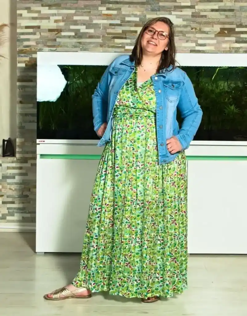 Une robe fleurie vert clair et bordeaux pour femme lumineuse et libre