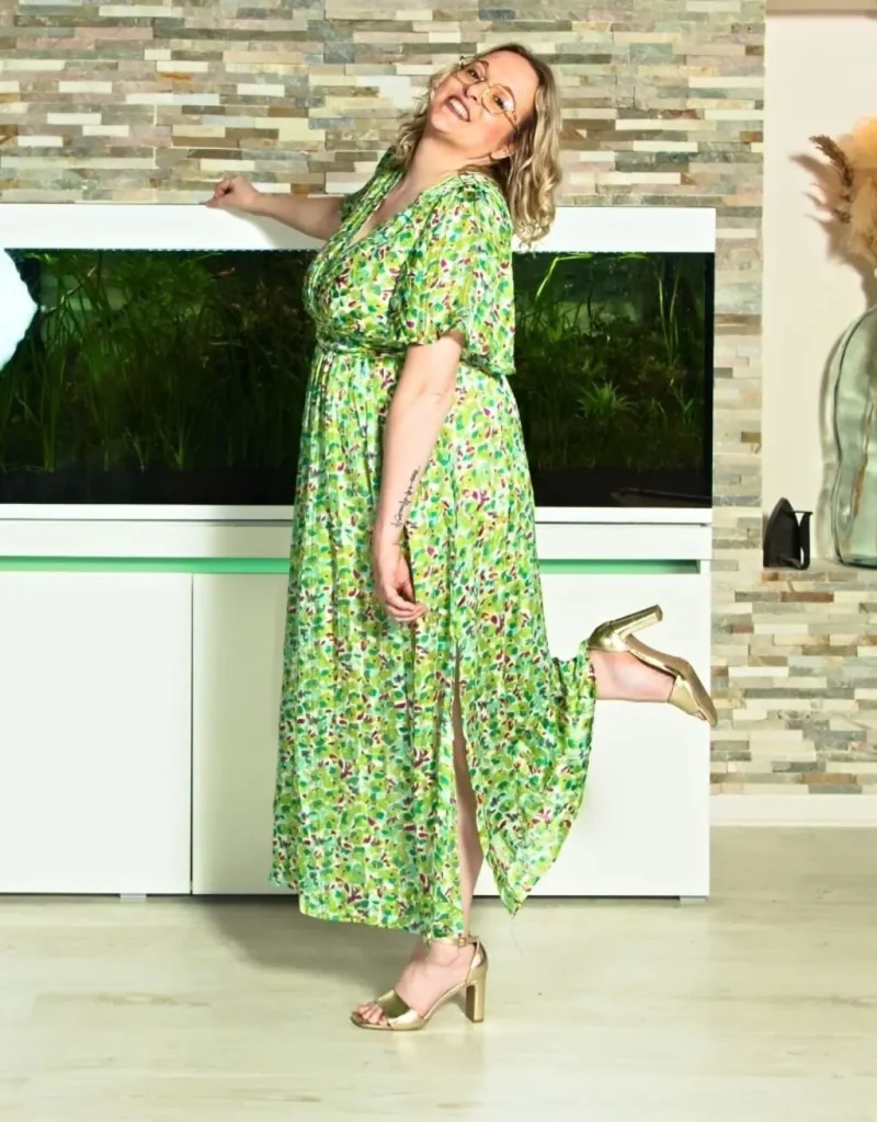 Un souffle de nature, une touche de passion… La robe verte imprimé allie la fraîcheur d’un vert tendre aux éclats profonds du bordeaux. Une robe fluide, joyeuse et originale, qui te suit avec grâce dans tous les moments de ta vie.