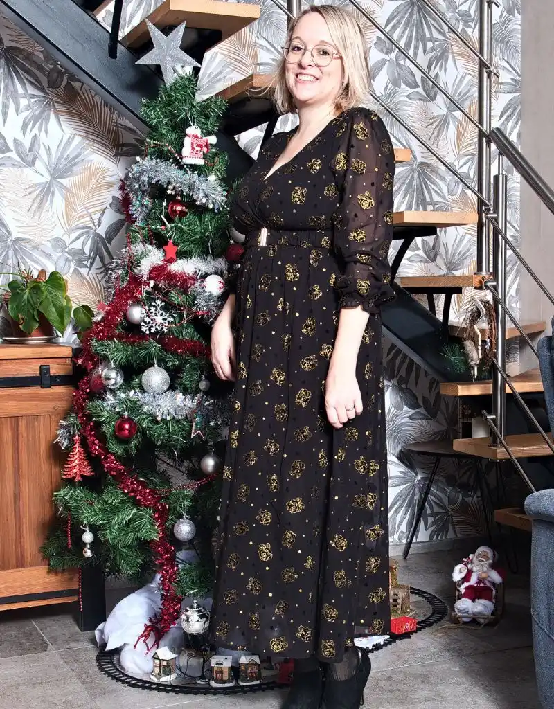 Offrez-vous l’élégance ultime avec cette robe longue noire et doré. Commandez-la maintenant et laissez votre style briller à chaque occasion spéciale !