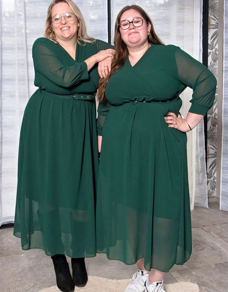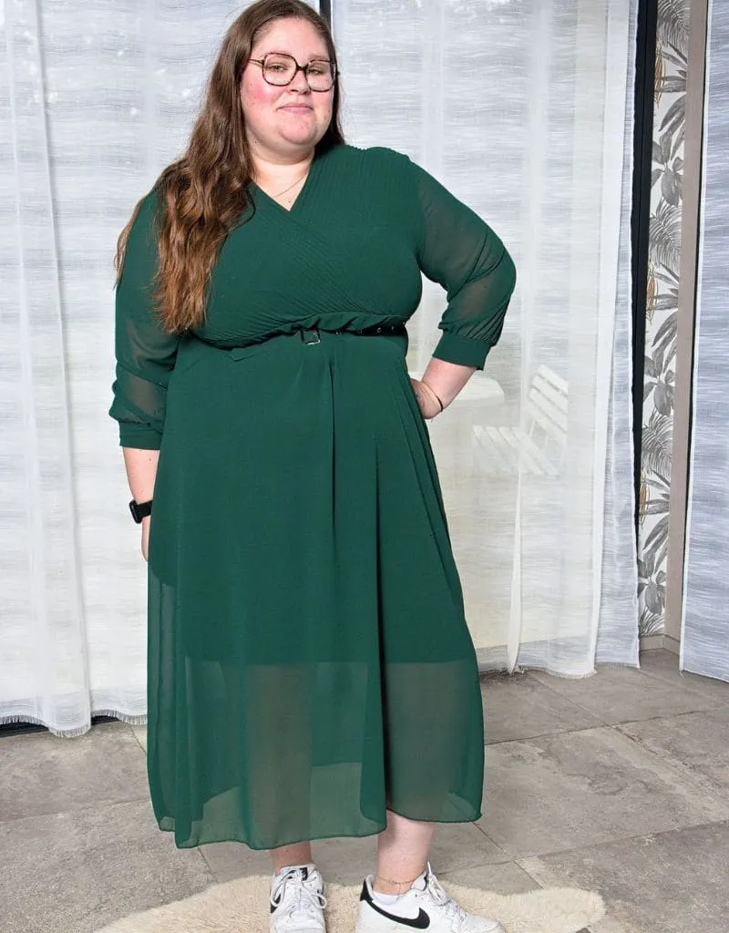 La Robe Émeraude des Bois est une invitation à se sentir belle, libre et confiante. Sa couleur verte profonde évoque la sérénité des forêts et s’harmonise avec toutes les carnations. Fluide et plissée, elle accompagne chacun de tes gestes avec grâce, sans jamais comprimer ta silhouette.
