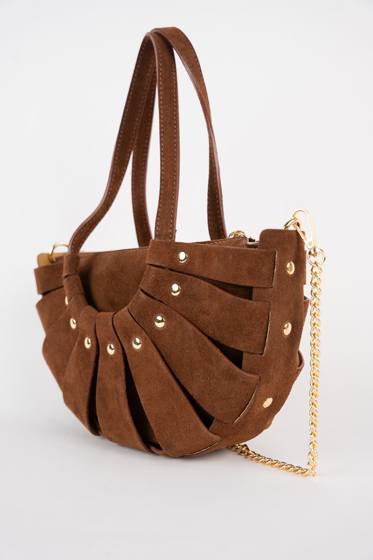 Découvrez SPARTI, l’accessoire qui capture l’esprit de l’élégance de Maison Héritage. Façonné en cuir de vachette suède, il déploie une silhouette en forme de demi-lune ponctuée de clous décoratifs couleur or. Son double compartiment ingénieux, sécurisé par une fermeture zippée, allie originalité intemporelle à la praticité de l’essentiel. Matière : Cuir de vachette suède Type : sac à main / bandoulière Design : demie-lune ; Clous décoratifs couleur or sur les lanières. Rangement : contient 2 poches de rangement : Fermeture principale zippée couleur or ; Sangle amovible chainette tressée dorée ; Pochette intérieure zippée dans doublure Dimensions : 34.5…