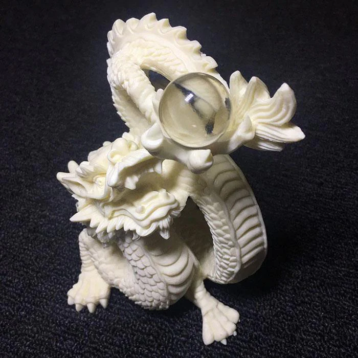CE DRAGON VIT UNE VÉRITABLE HISTOIRE D’AMOUR AVEC CETTE BOULE. CELA N’EST PAS ANODIN, CAR ELLE SYMBOLISE LE POUVOIR ET LA RICHESSE. STATUE EN PLANTE À FIBRES.